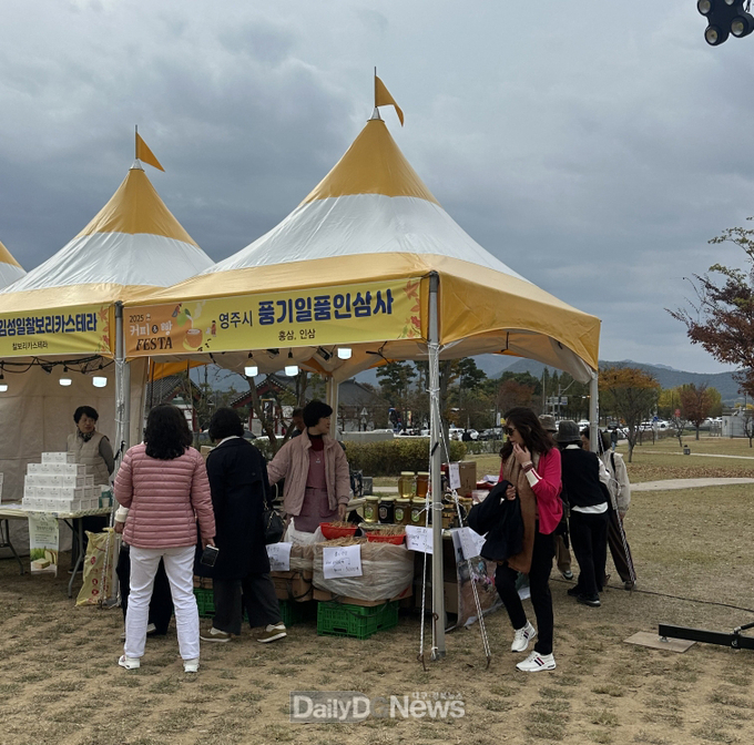 (데일리대구경북뉴스=양승미 기자)=영주시는 지난 11월 8일부터 9일까지 경주 월정교 남쪽 공원부지에서 열린 ‘2025 시월애마지막밤 커피빵 페스타’에 참가해 지역 대표 특산물인 풍기 인삼과 다양한 가공제품을 선보이며, 영주 인삼의 우수성을 널리 알렸다.