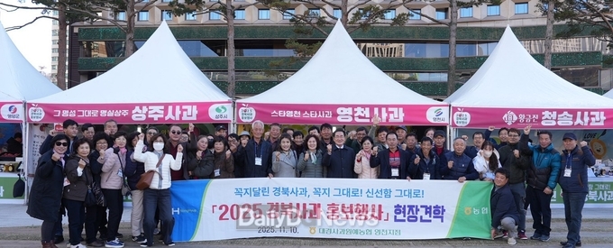 (데일리대구경북뉴스=양승미 기자)=영천시는 10일 서울시청 광장에서 열린 ‘2025 경북사과 홍보행사’ 개막식에 사과 재배 농가 80여 명과 함께 참석해, 영천사과의 우수성을 홍보했다고 밝혔다.