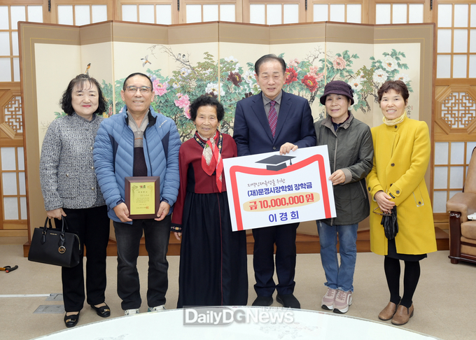(데일리대구경북뉴스=황지현 기자)문경시 호계면 신영에 거주하는 이경희씨(36년생, 마성면 출신)가 11월 10일 문경시청 접견실에서 (재)문경시장학회에 장학금 1,000만 원을 기탁했다.