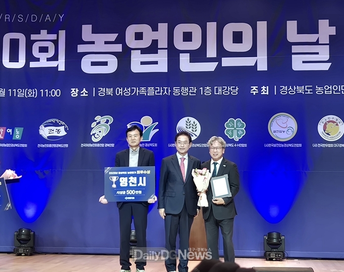 (데일리대구경북뉴스=양승미 기자)=영천시는 11일 경북여성플라자 동행관에서 열린 제30회 경상북도 농업인의 날 기념행사에서 2025년 경북 시‧군 농정평가 ‘최우수상’을 수상하는 영예를 안았다.