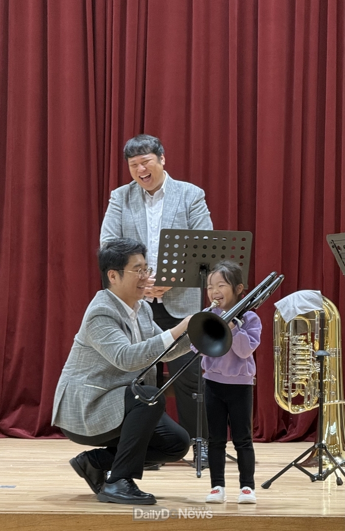 공연 후에는 유아들이 플루트와 트롬본, 튜바 등 다양한 악기를 직접 만지고 소리를 내보며 음악의 즐거움을 느꼈다. 또한 애국가 반주에 맞춰 ‘꼬마 지휘자’로 참여하는 시간을 통해 음악을 몸으로 표현하며 감정과 창의성을 키우는 시간을 가졌다.