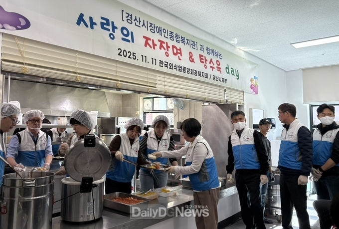 경산 지역의 소외된 이웃들에게 사랑을 전하고, 자립과 행복한 일상생활을 이어갈 수 있도록 지원하기 위해 마련된 이번 행사에서는 외식업 지부 회원과 관계자, 경산시 식품의약과 직원 등이 복지관을 찾은 150여 명의 이용자에게 직접 자장면과 탕수육 등을 조리해 제공하며 이웃사랑을 실천했다.