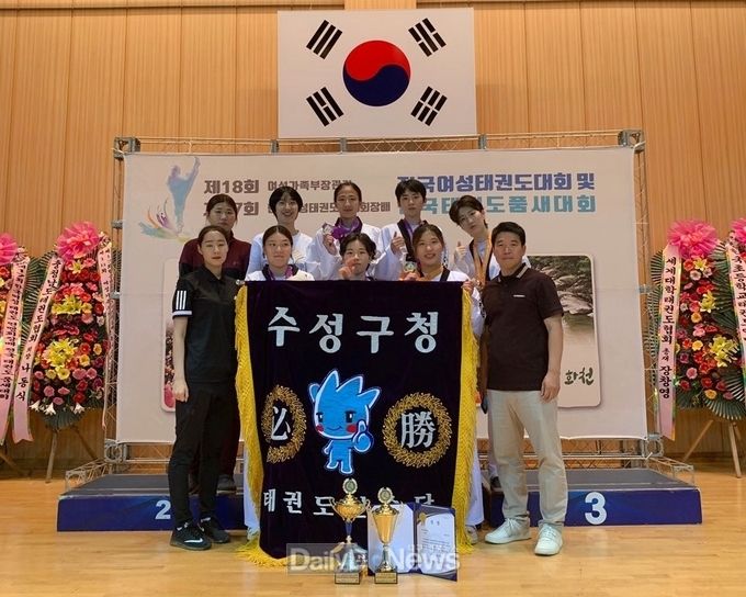 (데일리대구경북뉴스=이준호 기자) 대구 수성구청(구청장 김대권)은 수성구청 여자태권도 선수단이 지난 11일부터 14일까지 강원도 화천실내체육관에서 열린 ‘제18회 여성가족부장관기 전국여성태권도대회’ 여자 일반부 경기에서 개인전 종합 준우승(금메달 2, 동메달 4)과 단체전(5인조) 준우승의 우수한 성적을 거뒀다고 16일 밝혔다.