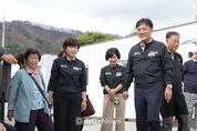 (데일리대구경북뉴스=양승미 기자)=청송군(청송군수 윤경희)은 지난 30일 추석 명절을 앞두고 임시주거용 조립주택에 거주하고 있는 이재민들을 찾아 위로를 전하고 불편사항을 점검했다. 이번 방문은 추석 명절을 맞아 임시주거용 조립주택에서 명절을 보내야 하는 주민들의 생활안정과 정서적 위로를 전하기 위해 마련되었다. 군수는 피해 주민들과 만나 이야기하며 애로사항을 듣고, 필요한 지원이 있는지 주거환경을 세심히 살폈다. 이재민들을 만난 윤경희 군수는 “예기치 못한 재난으로 삶의 터전을 잃은 이재민들에게 깊은 위로의 마음은 전한다.” 며 “조속한 일상 회복을 위해 끝까지 최선을 다해 지원하겠다.”고 말했다. 한편 청송군은 산불로 주거지를 잃은 주민들을 위해 상·하수도 인입 등 기반시설을 조성해 임시주거용 조립주택을 제공했으며, 시설물 보수·관리 및 창고 지원 등 생활 여건 개선을 위해 지속적으로 노력할 계획이다.