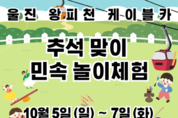 (데일리대구경북뉴스=양승미 기자)=울진군(군수 손병복)은 추석 연휴를 맞아 울진 왕피천공원에서 다양한 체험과 이벤트를 마련해 귀성객과 관광객들에게 즐길 거리를 제공한다. 이번 행사는 추석 연휴인 오는 10월 5일부터 10월 7일까지 케이블카와 아쿠아리움 사이 광장에서 윷놀이, 투호, 널뛰기 등 전통 민속놀이 체험을 직접 즐길 수 있다. 또한, 울진아쿠아리움 해양생물 생태설명회는 10월 3일부터 10월 9일까지 매일 4회(오전 10시30분, 오후 2시, 2시 30분, 3시) 진행되며 수달, 물범 등 다양한 해양생물 대한 흥미로운 이야기를 관람객들에게 들려줄 예정이다. 특히, 왕피천공원 제기왕 선발 이벤트는 왕피천공원을 방문하는 이용객들에게 소중한 추억을 제공하기 위해 10월 6일 오후 2시부터 오후 3시 30분까지 진행하며 제기차기를 많이 한 고객에게 다양한 울진 특산품이 증정된다. 참가 자격은 공원 내 전시관 등 입장권 또는 영수증을 소지한 이용객에게 주어진다. 손병복 울진군수는“추석 연휴 동안 고향을 찾은 귀성객과 울진을 방문하는 관광객들이 왕피천공원에서 즐겁고 의미 있는 시간을 보내길 바란다”며“다양한 즐길 거리와 이벤트를 통해 추석 연휴 왕피천공원에서