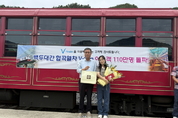 (데일리대구경북뉴스=양승미 기자)=봉화군 지난 19일 분천역에서 열린 ‘백두대간 협곡열차(V-train) 누적 이용객 110만명 돌파 기념행사’에 참석해 관광객과 함께 뜻깊은 시간을 가졌다. 이번 행사는 코레일 경북본부가 주관하고 봉화군이 함께한 자리로, 2013년 운행을 시작한 V-train이 누적 이용객 110만명을 달성한 것을 기념하기 위해 마련됐다. 분천역은 봉화군 대표 관광지인 분천산타마을과 함께 백두대간 협곡열차의 중심 거점역으로, 이번 행사를 통해 지역을 찾는 관광객들에게 더욱 즐겁고 특별한 추억을 선사했다. 봉화군은 그 동안 분천산타마을을 우리군을 대표하는 관광거점으로 발전시키기위해 분천산타마을 킬링콘텐츠 확충사업, 겨울왕국 분천산타마을 관광명소화사업, 분천산타마을 등산로 및 산타전망대 조성사업 등 군의 역량을 집중시켜 왔다. 박현국 봉화군수는 “협곡열차와 분천산타마을을 연계한 관광이 우리 군의 대표 브랜드로 자리매김하고 있다.”며 “앞으로도 코레일과 협력하여 더 많은 관광객들이 봉화를 찾을 수 있도록 관광 인프라를 확충해 나가겠다.”라고 밝혔다.