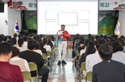 (데일리대구경북뉴스=황지현 기자)문경시는 9월 24일 시청 대회의실에서 직원 250여 명이 참석한 가운데 커피시인으로 알려진 윤보영 작가를 초청해 ‘시로 만난 문경 그리고 사랑’이라는 주제로 공직자 소양함양 특강을 열었다. 이번 특강은 윤 시인이 고향 문경에서 지닌 시적 감각과 삶의 철학을 바탕으로, 일상 속에서 발견하는 작은 행복과 따뜻한 감성을 전하며 공직자들의 정서적 공감과 자기 성찰의 기회 제공을 위해 마련됐으며, 윤 시인의 대표작인 커피와 사랑을 주제로 한 시들을 소개하며 공직자들에게 위로와 용기를 건넸다. 문경시는 이번 특강을 통해 공직자들의 감수성을 높이고 시민과 함께 소통하며 공감하는 행정을 실천하는 데 큰 도움이 될 것으로 기대하고 있다. 윤 시인은 특강에서 “시는 특별한 것이 아니라 우리의 일상 속에서 언제든 피어날 수 있는 감성”이라며, “공직자들이 시민과의 소통 과정에서 따뜻한 마음을 전하는 것이 중요하다”고 강조했다. 신현국 문경시장은“바쁜 일정에도 불구하고 문경을 방문하여 특강을 해주신 윤보영 시인께 감사드리며, 공직자들의 감수성을 높이고 시민과 함께 소통하며 공감하는 행정을 실천하는 데 큰 도움이 됐다.”고 했다.