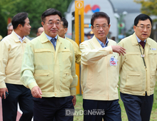 (데일리대구경북뉴스=김형만 기자)이철우 경상북도지사는 10월 16일 아시아태평양경제협력체(APEC) 안전관리 현장점검을 위해 경주를 방문한 윤호중 행정안전부 장관과 함께 에이펙(APEC) 안전대책 현황을 보고받고, 정상회의장 등 주요 시설을 점검했다. 행사를 보름 앞둔 이날 안전관리 현장점검은, APEC 정상회의 시설물 과 교통, 의료 등 전반적인 안전 준비 태세를 확인하고, 남은 기간 보완 상황을 확인하기 위해 행정안전부 주관으로 개최됐다. 경주엑스포대공원 대회의실에서 치러진 APEC 안전대책 현황 보고에서는 경상북도의 전반적인 준비 상황 보고와 의료 대응, 응급구조 체계, 교통·수송 안전대책, 테러·경호와 화재 예방 대책 등이 논의됐다. 준비 상황 보고를 맡은 김상철 경상북도 APEC 준비지원단장은 “현재 주요 기반 시설은 9월 말 시설 공사를 완료하고 마무리 작업 중으로, 시범 운전 과정에서 안전 문제를 다시 꼼꼼히 확인해 나가겠다”고 말했다. 또한 “지역을 잘 아는 전문가와 중앙부처와의 지속적인 협의를 통해 수송, 교통, 의료 등 분야에서 최고의 대응 태세를 마련한 만큼, 안전하고 쾌적한 행사가 개최될 수 있도록 마지막까지 긴장을 늦추지 않고 최선을