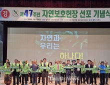 (데일리대구경북뉴스=김형만 기자)경상북도는 10월 17일 칠곡군 교육문화회관 대공연장에서 김학홍 경상북도 행정부지사, 배진석 경상북도의회 부의장, 박종태 칠곡부군수, 김찬수 (사)자연보호중앙연맹 경상북도협의회장과 22개 시군 자연보호협의회 회원 850여 명 등이 참석한 가운데 제47주년 자연보호헌장 선포 기념식을 가졌다. 자연보호헌장 기념식은, 1970년대 급격한 산업 발달로 오염된 자연을 지키고 가꾸기 위해 정부에서 1978년 10월 5일 자연보호헌장을 선포한 것을 기념하고 그 정신을 되새기며 도민의 환경윤리에 대한 올바른 가치관 인식 제고와 자연보호 참여를 활성화하기 위해 매년 개최되고 있다. 이날 행사는 경북도 및 22개 시군 자연보호협의회의 자연보호 기 입장을 시작으로, 자연보호헌장과 자연보호실천결의문 낭독, 유공자 표창, 환영사, 기념사, 축사, 퍼포먼스 순으로 진행됐다. 자연보호협의회 회원들은 자연보호헌장과 자연보호실천결의문을 통해 자연환경의 중요성과 보전의 필요성을 알리고 자연훼손과 환경오염을 최소화하기 위한 환경지킴이의 역할에 최선을 다할 것을 다짐했다. 이어서 환경보전 활동에 헌신하고 깨끗한 경북 만들기를 실천한 유공자들에게 환경부장관, 경상