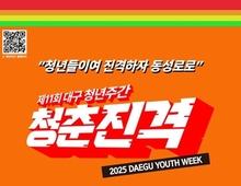 (데일리대구경북뉴스=이준호 기자) 대구시는 10월 18일(토)부터 19일(일)까지 동성로 일대(CGV대구한일~동성로28아트스퀘어~구 중앙파출소)에서 ‘2025 대구청년주간’을 개최한다고 밝혔다. 대구시는 지난 2015년 전국 최초로 ‘청년주간’을 도입한 이후, 2020년 「청년기본법」 제정과 함께 제도의 전국적 확산을 이끌어왔다. 올해로 11회를 맞이한 대구청년주간은 단순한 지역 행사를 넘어 청년정책과 문화 교류가 어우러지는 전국적 플랫폼으로 자리매김하고 있다. 이번 축제는 모든 세대가 각자의 청춘을 이야기하며 함께 나아가자는 응원의 메시지를 담아 ‘청춘진격(靑春進擊)’을 슬로건으로 내걸었다. 특히 레트로(RETRO) 감성을 접목해 청년뿐만 아니라 중장년, 노년 세대까지도 함께 즐길 수 있는 세대 공감형 축제로 꾸며진다. 주요 프로그램으로는 청년 댄스대회 및 가요제, 청년토크쇼, 청년카니발, 달빛골든벨, 청춘 스탬프 투어, 참가 부스 시상식 등 다채로운 콘텐츠가 마련돼 있다. 특히, 동성로 메인무대에서는 청년 댄서와 보컬이 실력을 겨루는 ‘스트릿 배틀 & 청춘 싱어즈’가 펼쳐진다. 우승자에게는 상금과 함께 폐막식 오프닝 무대의 기회가 주어진다. 또 1