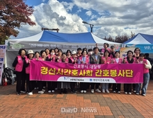 (데일리대구경북뉴스=황지현 기자)사)대한간호협회 경상북도 경산시간호사회(회장 송미숙, 대경대학교 간호학과 교수)는 10월 25일 삼성현역사문화공원 야외공연장에서 열린 ‘2025년 기부데이 및 사랑나눔 한마당 축제’에 참여해 이웃돕기 성금 100만 원을 경북사회복지공동모금회에 기탁했다. 이날 행사에는 경산시간호사회 회원 50여 명이 참여해 시민 2,000여 명을 대상으로 건강홍보관을 운영하며 지역사회 건강증진과 나눔문화 확산에 앞장섰다. ‘건강 생활 실천, 함께 하는 우리!’를 주제로 열린 건강홍보관에서는 ▲혈압 및 체성분 측정 ▲심뇌혈관질환 예방 수칙 안내 ▲만성질환 맞춤형 건강상담 등 생활 속 건강관리를 돕는 프로그램이 진행돼 가족 단위, 어르신, 청소년에 이르기까지 큰 호응을 얻었다. 송미숙 회장은 “간호사로서 간호 본질적 가치인 ‘돌봄과 사랑’을 실천하게 되어 뜻깊다”며, “앞으로도 지역사회 건강지킴이로써 시민과 함께하는 경산시간호사회가 되도록 최선을 다하겠다”고 말했다. 조현일 경산시장은 "나이팅게일의 희생과 봉사 정신을 실천해 주는 경산시간호사회의 따뜻한 마음에 감사드리며, 앞으로도 경산시민의 건강증진을 위해 많은 협조를 부탁드린다”고 전했다. 경산