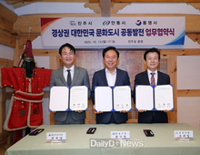 (데일리대구경북뉴스=황지현 기자)안동시는 10월 13일 진주시 진주성 내 중영에서 ‘경상권 대한민국 문화도시 공동발전을 위한 업무협약’을 체결했다. 이번 협약은 경상권 대표 문화도시인 안동, 진주, 통영이 상호 협력체계를 구축하고, 지역 간 문화도시 비전 공유 및 정책 협력을 통해 문화도시의 지속 가능한 발전을 도모하기 위해 마련됐다. 주요 협약 내용은 ▲지역 간 문화도시 비전 공유 및 정책 협력 ▲공통 문화자원을 활용한 인적 교류 ▲지역 간 문화기업 및 스타트업 네트워크 교류 ▲기타 상호 발전과 교류 증진에 관한 사항 등이 포함된다. 안동시는 ‘놀이로 즐거운 전통문화도시’를 비전으로 전통놀이문화를 재해석한 독창적 문화콘텐츠를 확산하고, 통영은 ‘예술의 가치를 더하는 창의문화도시’를 지향하며 음악과 공예 중심의 창작 활동과 예술가 지원을 강화한다. 진주는 ‘문화와 산업이 조화롭게 공존하는 도시’로서 세 도시 간 협력을 통해 경상권 문화산업의 새로운 성장동력을 만들어 갈 계획이다. 권기창 안동시장은 “이번 협약을 계기로 세 도시가 각자의 문화적 강점을 살려 상호 협력한다면, 경상권은 대한민국 문화정책의 중심축이자 지역 문화 균형발전의 모범 모델이 될 것”이라며
