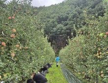 (데일리대구경북뉴스=양승미 기자)=영덕군은 고품질 사과 생산의 기반을 강화하고 농가의 일손 부족 해소와 생산량 증대를 위한 ‘2축 사과원 조성 시범사업’의 평가회를 지난 21일 창수면 갈천리에서 개최했다. 2축·다축 사과원은 사과나무의 수형을 2개 혹은 그 이상의 수직평면 형태로 유도해 수형을 단순화하고 수확 편의성을 높이는 새로운 재배 기술로, 햇빛 투과율을 개선하고 병해충 관리 효율이 좋아져 재배 관리가 쉽고 생산량이 늘어나는 효과가 있다. 또한, 기계화 수확에 유리한 환경을 조성할 수 있고, 열매솎기, 수확 작업 등의 인건비가 절감돼 재배 농가에 큰 도움이 된다. 이에 영덕군은 2축·다축 사과원 조성을 목표로 시범사업을 추진해 그 성과를 이번 평가회를 통해 공유하게 됐다. 이날 평가회에는 김광열 영덕군수를 비롯해 농업기술센터, 지역 사과 재배 농가, 농업인 단체 등이 참석해 사업의 추진 성과를 점검하고 향후 보급 확대 방안을 논의했다. 김광열 영덕군수는 “2축·다축 사과원은 사과 재배 농가의 소득을 높이고 경영비와 인건비 절감에 큰 도움이 될 것”이라며, “이번 평가회 결과를 토대로 현장 중심의 기술 지원을 시행해 지역 농업의 경쟁력 강화에 이바지하겠다