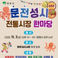 (데일리대구경북뉴스=양승미 기자)=영주시는 전통시장의 활력 회복과 지역 상권 활성화를 위해 오는 7일 영주365시장 무대 일원에서 ‘전통시장 문전성시 한마당’ 행사를 개최한다고 밝혔다 올해 행사는 ‘문어랑 전이랑! 문전성시 영주!’를 주제로, 시민과 상인이 함께 즐기는 축제의 장으로 마련됐다. ‘문전성시(門前成市)’라는 이름처럼, 문 앞이 사람들로 북적이는 활기찬 전통시장의 풍경을 재현하겠다는 의미를 담고 있다. 이번 행사는 오후 1시부터 9시까지 체험·공연·먹거리 프로그램이 이어지며, 시민과 상인이 함께 어울리는 다채로운 전통시장 축제로 펼쳐진다. 본행사는 오후 6시에 시작해 내빈소개와 격려사, 축사로 문을 열고, 이후 지역가수 초청공연 등 다채로운 무대가 이어지며 전통시장의 밤을 더욱 흥겹게 만들 예정이다. 상시 프로그램으로는 비석치기·사방치기 등 전통놀이 체험, 에코백 만들기와 플로깅 키트 만들기 등 시민 참여형 체험이 준비됐다. 또한 오후 6시부터 9시까지 먹거리 장터가 운영되어 ‘문어’와 ‘전’ 등 시장의 별미를 맛볼 수 있는 장터 분위기가 조성된다. 특히 시장 상인들이 직접 준비한 다양한 먹거리 부스가 마련돼, 영주365시장만의 따뜻한 인심과 정겨