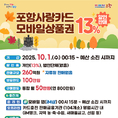 (데일리대구경북뉴스=양승미 기자)=포항시는 추석 명절 지역경제 활력 제고를 위해 내달 1일부터 카드형·모바일 포항사랑상품권(이하 포항사랑카드)을 260억 원 규모로 13% 할인 판매한다. 시는 지난 9일 발행한 600억 원 규모 상품권이 완판됨에 따라, 내달에도 13% 할인 판매를 통해 시민과 소상공인들에게 직접적인 혜택을 제공하고, 지역 골목상권 소비 촉진의 마중물 효과를 이어가겠다는 방침이다. 올해 포항시는 당초 목표보다 500억 원 확대한 총 3,000억 원 규모의 상품권을 발행한다. 연말까지 매월 초 상품권을 발행하며 13% 할인율을 유지해 지역 자금 역외 유출을 막고 소상공인 매출 증대, 지역경제 선순환 구조 강화에 기여할 계획이다. 개인별 구매 한도는 월 50만 원, 보유 한도는 100만 원으로 조정된다. 개인을 대상으로만 할인하고, 지류형은 판매하지 않는다. 상품권은 10월 1일 0시 15분부터 모바일 앱 ‘iM샵’에서 충전할 수 있으며, 104개 판매대행 금융기관 영업점에서도 영업시간 내 충전이 가능하다. 포항사랑카드는 실물카드 결제 외에도 ▲삼성페이 ▲네이버페이 QR결제 ▲모바일 앱 iM샵 QR결제 등 다양한 결제 수단을 지원한다. 지역 내