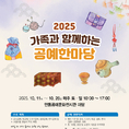 (데일리대구경북뉴스=황지현 기자)안동공예문화전시관이 주최하고 안동시가 후원하는 ‘2025 가족과 함께하는 공예한마당’ 행사가 한창 준비되고 있다. 이번 행사는 공예품의 아름다움을 전달하고 안동시민이 가까운 곳에서 작품을 접하며 공예에 대한 친근한 경험을 할 수 있도록 기획됐다. 이번 행사는 10월 11일부터 26일까지 매주 주말, 안동공예문화전시관 앞마당(안동시 석주로 245)에서 열린다. 어린이들을 대상으로 무료 공예 체험과 경연대회가 진행되며, 어린이들(초등 6학년생까지)이 가족과 함께금속․목공․섬유․한지․도자기공예 분야에서 직접 작품을 만들어 솜씨를 겨룰 수 있다. 또한, 매주 다른 분야의 우수 참가자는 수상의 기회도 얻게 된다. ‘2025 가족과 함께하는 공예한마당’은 안동의 공예 문화를 경험하고 나만의 작품을 만들며 소중한 시간을 보내 수 있는 기회다. 참여자들은 직접 손으로 작품을 만들어보며 공예의 창조적인 과정과 즐거움을 체감할 수 있다. 모든 체험은 무료이며, 안동 공예작가들의 다양하고 수준 높은 체험 활동을 제공해 시민에게 즐거움을 선사할 예정이다. 안동시 관계자는 “이번 ‘2025 가족과 함께하는 공예한마당’ 행사는 시민이 일상 속에서 공예