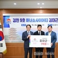 (데일리대구경북뉴스=황지현 기자)김천시(시장 배낙호)는 10월 24일, 김천시청 접견실에서 김대근농약사 김대근 대표의 ‘김천 9호(경북 189호) 아너 소사이어티 신규 회원 가입식’을 개최했다. ‘아너 소사이어티(Honor Society)’는 사회복지공동모금회가 운영하는 고액 기부자 클럽으로, 1억 원 이상을 일시 또는 5년 이내 분할 기부하는 개인에게 부여되는 명예로운 회원 자격이다. 김대근 대표는 지난 2022년 이후 김천에서 3년 만에 새롭게 탄생한 신규 회원으로, 이번 가입으로 김천시의 아너 소사이어티 회원은 총 9명으로 늘었다. 이날 가입식에는 배낙호 김천시장을 비롯해 전우헌 경북사회복지공동모금회장, 장재호 김천 사랑의열매 나눔봉사단장 등이 참석해 김대근 대표에게 진심 어린 축하와 응원의 메시지를 전했다. 김천 출신의 젊은 기업인 김대근 대표는 평소에도 어려운 이웃에 대한 관심과 애정으로 지속적인 사회공헌 활동에 참여해 왔다. 그는 부친과 함께 ‘김부자종합농약사’를 운영하며 2013년부터 2021년까지 매월 정기 기부에 참여했으며, 최근 새로 문을 연 ‘김대근농약사’로도 그 나눔을 이어갈 예정이다. 김대근 대표는 “아너 소사이어티 회원이 되어 지역사