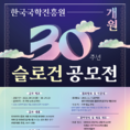 (데일리대구경북뉴스=황지현 기자)한국국학진흥원(원장 정종섭)은 10월 14일부터 24일까지 전 국민을 대상으로 ‘2026년 한국국학진흥원 개원 30주년 슬로건’을 공모한다. 이번 공모전은 한국국학진흥원이 개원 30주년을 맞이하여 기관의 역사 및 미래비전을 함축적으로 보여주는 슬로건을 제시하고자 기획됐다. ‣ 공모전은 어떻게 진행되나요? 이번 공모전에는 대한민국 국민이라면 누구나 응모할 수 있으며, 공모주제는 한국국학진흥원 개원 30주년의 의미 및 미래비전을 제시할 수 있는 표어나 문구다. 접수는 우편 혹은 이메일(shbae@koreastudy.or.kr) 로 가능하다. 1인 당 한 작품만 응모 가능하다. 심사 기준은 창의성과 함축성, 적합성, 활용의 4개 부문이며 1차 실무부서 심사와 2차 내, 외부 심사위원 평가를 통해 최종선정된다. 심사결과는 11월 초에 발표될 예정이다. 총상금은 140만원이며, 최우수상 1명에게는 50만원, 우수상 2명에게는 30만원, 장려상 3명에게는 10만원씩 각각 상금이 수여된다. 공모전의 세부 사항은 한국국학진흥원 홈페이지를 통해 확인할 수 있다. ‣ 한국국학진흥원은 어떤 기관인가요? 한국국학진흥원은 1996년 3월 7일에 훼손