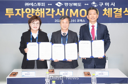 (데일리대구경북뉴스=김형만 기자)경상북도와 구미시는 2월 11일 코엑스에서 열린 ‘세미콘코리아 2026’에서 ㈜에스투피와 세라믹 기반 첨단소재 생산거점 구축을 위한 투자양해각서(MOU)를 체결했다. 이로써 경상북도는 이번 투자양해각서 체결을 통해 2026년 상반기 투자유치 목표 5조 원 중 4조 원을 달성했다. 또한 민선 8기 투자유치 목표액 35조 원을 넘어 총 45조 원의 투자유치 실적을 기록하며, 삼성SDS AI 데이터센터, C&P신소재테크놀로지의 양극제 제조, ㈜루브루의 관광단지 조성 등 첨단전략산업과 관광분야를 중심으로 지역 산업 경쟁력 강화와 미래 성장 기반 구축에 속도를 내고 있다. 이번 협약을 통해 에스투피는 2026년부터 2031년까지 총 6,000억 원을 투자해 구미시 수출대로 411 일원(舊 LG디스플레이 공장)에 연료전지용 세라믹 소재 양산시설을 구축하고, 2031년까지 1,600여 명의 고용을 확대할 계획이다. 협약식에는 양금희 경상북도 경제부지사, 김장호 구미시장, 김상범 에스투피 부사장 등 20여 명이 참석했다. 미코그룹 계열사인 에스투피는 그룹에서 축적된 세라믹 소재 제조 노하우를 바탕으로 친환경 발전기의 첨단소재 생산 거