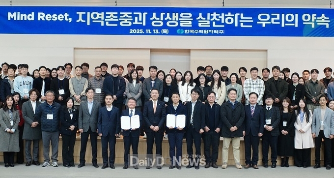 (데일리대구경북뉴스=황지현 기자)한국수력원자력(이하 한수원)이 11월 13일 본사 및 전 사업소 지역협력 담당자 100여 명이 함께한 가운데 경주 교원드림센터에서 ‘마인드 리셋, 지역 존중과 상생을 실천하는 우리의 약속’ 서약식을 열고, 주민 존중·공감·소통의 실천 의지를 다졌다.