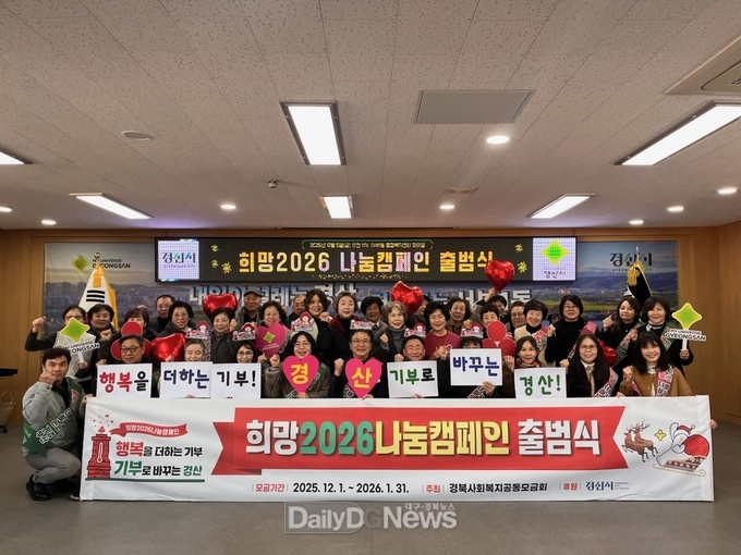 ‘희망 2026 나눔 캠페인’은 경북사회복지공동모금회가 주관하고 경산시가 후원하며, 집중 성금 모금 기간은 2025. 12. 1 ~ 2026. 1. 31.까지 62일간 진행된다.