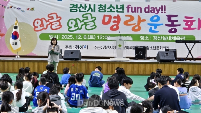 (데일리대구경북뉴스=황지현 기자)경산시(시장 조현일)는 12월 6일 경산시청소년문화의집 주관으로 경산실내 체육관에서 청소년과 자원봉사자 300여 명이 참석한 가운데 ‘경산시 청소년 FUN DAY! 와글와글 명랑운동회’행사를 개최했다.