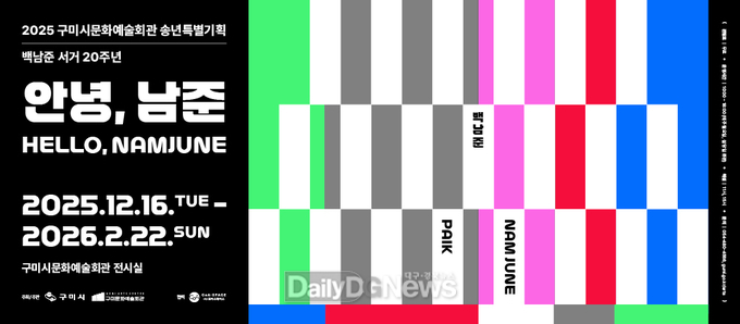 (데일리대구경북뉴스=황지현 기자)구미시는 세계적인 미디어 아티스트 백남준의 작품세계를 총망라한 송년특별전 <안녕, 남준 Hello, NAMJUNE>을 2025년 12월 16일부터 2026년 2월 22일까지 구미시문화예술회관 전시실에서 개최할 예정이다.