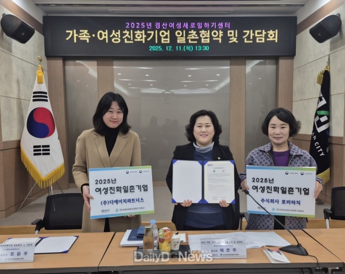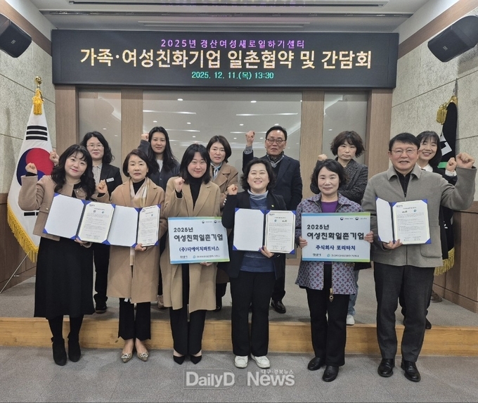 (데일리대구경북뉴스=황지현 기자)경산여성새로일하기센터(센터장 채은주)는 12월 11일 시청 별관 회의실에서 기업 관계자 등 20여 명이 참여한 가운데 ‘가족·여성 친화 기업 일촌 협약 및 간담회’를 개최했다.