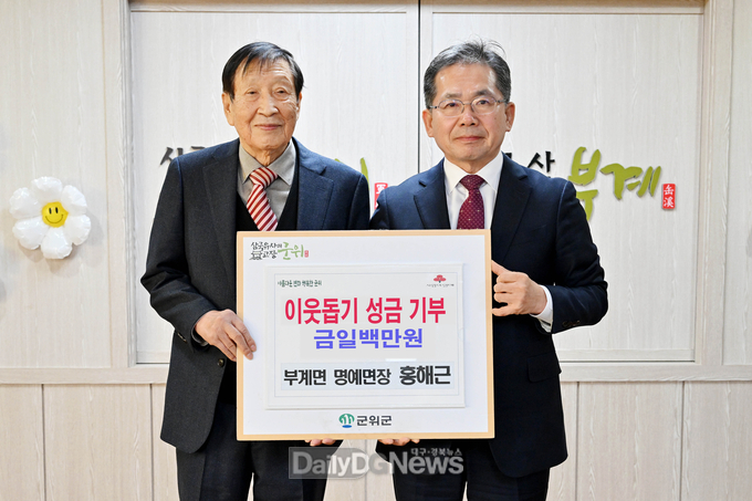 (데일리대구경북뉴스=황지현 기자)1월 8일, 군위군 부계면 홍해근 명예면장은 어려운 이웃들을 돕기 위해 성금 100만원을 기탁했다.
