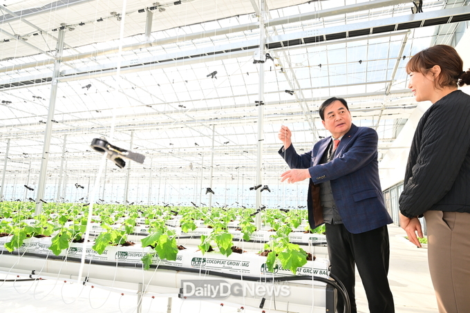 해당 농가는 국비 공모사업 지원을 포함해 총사업비 11억 원을 투입해 4,577㎡ 규모의 스마트팜 온실을 조성했으며, 보온시설, 내·외부 환기시설, 양액기 등 첨단 스마트팜 설비를 구축하여 오이를 재배하고 있다.