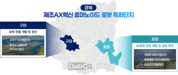 (데일리대구경북뉴스=황지현 기자)경상북도는 로봇 핵심기업과 연관 제조 생태계가 밀집해 있는 구미와 포항을 거점지역으로 하여, 산업통상부가 추진 중인 ‘국가첨단전략산업 특화단지(로봇 분야)’지정에 본격적으로 나섰다.