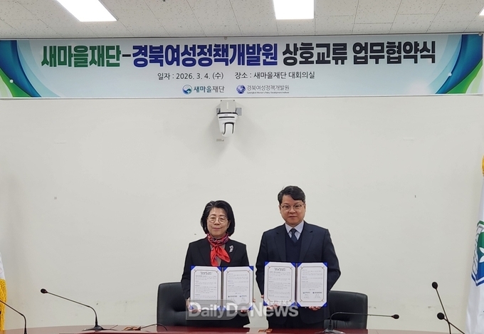 (데일리대구경북뉴스=황지현 기자)새마을재단(대표이사 이영석)과 경북여성정책개발원(원장 하금숙)은 3월 4일 새마을재단 대회의실에서 업무협약(MOU)을 체결하고 국내외 새마을사업 및 국제개발협력 분야에서의 협력을 강화하기로 했다.