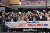 (데일리대구경북뉴스=이준호 기자) 대구행복진흥원은 지난 11일 오후, 대구 평화시장을 찾아 배기철 이사장과 임직원 80여 명이 참여한 가운데 ‘설맞이 전통시장 장보기 행사’를 진행했다고 밝혔다. 이번 방문은 고물가와 소비 심리 위축으로 어려움을 겪는 지역 상인들을 격려하고 전통시장 이용 활성화를 도모하기 위해 마련되었다. 대구행복진흥원 배기철 이사장 및 임직원들은 시장 곳곳에서 명절 제수용품과 선물을 직접 구매하며 실질적인 소비 진작을 위한 캠페인을 펼쳤다. 특히, 현장에서는 상인들의 애로사항을 청취하고 민생 현장의 생생한 목소리를 수렴하는 등 시민의 삶과 밀착된 소통의 시간을 가졌다 배기철 대구행복진흥원 이사장은 “이번 장보기 행사가 위축된 소비 심리로 어려움을 겪는 상인들에게 작은 보탬이 되기를 바란다.”며 “앞으로도 대구행복진흥원은 지역 사회와 호흡하며 실질적인 도움이 되는 나눔 활동을 통해 공공기관으로서의 사회적 책임을 다하겠다.”고 밝혔다.