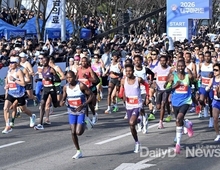 (데일리대구경북뉴스=황지현 기자)2월 22일 대구스타디움에서 열린 ‘2026 대구마라톤’이 25회째를 맞아 코스를 재정비하고 운영 완성도를 높인 가운데, 여자부 대회 신기록과 남자부 대회 2연패 기록이 동시에 탄생했다. 2026대구마라톤의 우승자이자 대회 2연패의 주인공은 남자부 지난해 대회 우승자 게브리엘 제럴드 게이(탄자니아) 선수다. 게이 선수는 2시간 8분 11초의 기록으로 2위보다 1초 앞선 손에 땀을 쥐는 경쟁 속에 가장 먼저 결승선을 끊으며 남자부 최초 2연패를 달성했다. 여자부에서는 릴리안 카사이트 렌제룩(케냐) 선수가 2시간 19분 35초의 기록으로 여자 대회 정상에 올랐다. 하프마라톤 세계랭킹 3위인 렌제룩 선수는 첫 풀코스 출전에서 기존 대회 기록을 1분 30초가량 앞당기며 대회 신기록을 세웠다. 국내 선수들도 한국마라톤의 저력을 뽐냈다. 남자부에서는 이동진(대구광역시청 소속) 선수가 2시간 20분 43초의 기록으로 국내 1위를 기록했으며, 여자부에서는 최정윤(충남도청) 선수가 2시간 32분 35초의 기록으로 국내 우승을 차지했다. DJ 응원카와 24개 팀, 700여 명의 시민 응원단을 비롯한 대구 시민의 뜨거운 응원은 선수들에게 마지막까