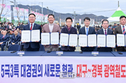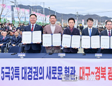 (데일리대구경북뉴스=이준호 기자) 대구시는 경상북도와 함께 2월 27일 오후 2시 북삼역(칠곡군 북삼읍)에서 열리는 대경선 북삼역 개통식에 앞서 ‘대구~경북 광역철도 공동 건의문’ 서명식을 개최했다고 밝혔다. 이번 서명식은 현재 예비타당성조사가 진행 중인 대구~경북 광역철도의 조속한 추진을 위해 관계 지자체가 공동의 정책 의지를 표명하고, 중앙정부에 예타 통과와 조기 착공을 공식 건의하기 위해 마련됐다. 대구~경북 광역철도는 대구 도심과 대구경북 민·군 통합공항을 연결하고 대구·경북을 남북으로 잇는 핵심 광역교통 인프라다. 대구시와 경북 주요 도시를 환승 없이 연결해 광역생활권을 형성하고 대구·경북 메가시티 기반을 구축할 중추적 사업으로 평가받고 있다. 특히, 이 사업은 정부의 ‘5극3특’ 초광역권 전략과 국가균형발전 정책 실현을 위한 대경권 대표 교통 인프라로, 인구 감소와 지역소멸 위기 대응은 물론 산업·의료·교육·문화 기능을 아우르는 미래 성장 기반으로 주목받고 있다. 이날 서명식에는 대구광역시장 권한대행과 경상북도지사, 군위군수, 의성군수, 구미시장, 칠곡군수가 참여해 공동 건의문에 서명하고, 예비타당성조사의 조속한 통과를 공식 건의할 예정이다. 대구