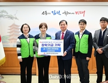 (데일리대구경북뉴스=황지현 기자)12월 11일 김천의 교육 발전과 미래인재 양성을 위해 한국전력기술(주) 전력기술연구원(원장 설영실)은 김천시인재양성재단에 700만 원의 장학 기금을 기탁했다. 한국전력기술(주)는 2005년부터 참사랑 봉사단을 공식 창단하여 정기적인 사회공헌활동을 추진하고 있으며, 산하 전력기술연구원도 독자적으로 미래인재 양성에 기여하고자 2022년부터 김천시 인재양성재단에 꾸준히 장학기금을 기탁하고 있다. 설영실 한국전력기술(주) 전력기술연구원장은 “우리 연구원들이 뜻을 모아 사회공헌사업의 일환으로 지역인재 양성 분야에 주안점을 두고 이번 장학기금을 기탁하게 됐다. 앞으로도 지역사회와 상생 협력해 사회적 책임을 다하는 공기업으로 김천 지역발전의 밑거름이 되겠다.”고 말했다. 배낙호 김천시인재양성재단 이사장은 “귀한 장학기금을 기탁해 주신 설영실 원장님을 비롯한 전력기술 연구원분들께 진심으로 감사드린다. 후원금은 우수한 지역인재 육성을 위해 뜻깊게 사용하겠다.”는 인사를 전했다. 한편, 김천시인재양성재단 장학기금은 단체, 출향인, 기업체, 공공기관 등 많은 시민들의 관심과 협조로 현재까지 총 226억 7천 4백만 원의 장학기금을 조성했으며,