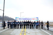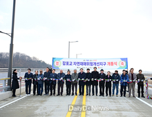 (데일리대구경북뉴스=황지현 기자)김천시(시장 배낙호)는 12월 11일, 감포교 자연재해위험지구 정비사업이 마무리 단계에 접어들며 도의원 및 시의원, 지역주민 등 170여 명이 참석한 가운데 신설 감포교 개통을 기념하는 테이프 커팅식을 가졌다. 감포교는 감문면 태촌리~아포읍 의리를 연결하는 30년 이상 된 노후 교량으로, 홍수 시 제방 및 호안 유실 위험이 높을 뿐 아니라 교량 내 인도 미설치로 통행에 많은 불편함이 있어 교량 신설의 필요성이 꾸준히 제기돼 왔다. 이에 시에서는 재해예방사업 추진을 위해 국회의원 등과 합심하여 국·도비 확보에 나섰으며, 2019년 9월 행정안전부 공모사업인 ‘감포교 자연재해위험개선지구’에 선정되는 성과를 거두었다. 이후 같은 해 11월 실시설계용역에 착수한 후, 2022년 6월 감포교 자연재해위험개선지구 정비사업을 본격적으로 착공했다. 본 사업은 노후 교량인 감포교를 철거 및 신설하는 사업으로 총사업비 295억 원이 투입됐으며, 전체 도로 개설 구간은 총 848m에 이른다. 이 중 새로 건설되는 교량은 연장 568m, 폭 12m의 규모이며 기존 교량에는 없던 보행자 인도부를 설치하고 본선 종점부에는 회전교차로 설치로 통행 안전성
