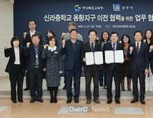 (데일리대구경북뉴스=양승미 기자)=경주시와 경상북도교육청이 용황지구 중학교 이전을 추진한다. 통학 불편 해소와 교육환경 개선을 위한 조치다. 경주시는 경상북도교육청과 ‘신라중학교 용황지구 이전을 위한 업무협약’을 체결했다고 2일 밝혔다. 협약식은 지난달 27일 경주교육지원청에서 열렸으며, 주낙영 경주시장과 임종식 경상북도교육감을 비롯한 양 기관 관계자들이 참석했다. 참석자들은 신라중학교의 원활한 이전 추진과 지역 교육여건 개선을 위해 긴밀히 협력하기로 했다. 현재 황성동에 위치한 신라중학교는 건립 40년이 지나 시설 노후화 문제가 꾸준히 지적돼 왔다. 대형 도로와 인접해 있어 학생들의 교통사고 위험에 대한 우려도 이어졌다. 특히 공동주택이 밀집한 용황지구에는 중학교가 없어 학생들이 원거리 통학을 해야 하는 불편을 겪어왔다. 이는 지역 주민들의 대표적인 숙원 과제로도 꼽혀왔다. 시는 주민 요구를 반영해 경북교육청과 수차례 협의를 이어왔으며, 이번 협약 체결을 계기로 용황지구 내 유휴 학교 부지로의 이전 추진에 속도를 낼 수 있는 기반을 마련했다. 협약에 따라 경상북도교육청은 신라중학교 이전 절차를 총괄하고 관계 기관 협의를 주도한다. 경주시는 관련 행정 절차에