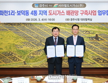 (데일리대구경북뉴스=양승미 기자)=경주시와 서라벌도시가스㈜는 도시가스 미공급 지역인 화천1리와 보덕동 4통 일원에 도시가스 배관망을 구축하기 위한 업무협약(MOU)을 체결했다고 4일 밝혔다. 이번 사업은 총 30억 2천만 원을 투입해 배관망 7.8km를 매설하고 166세대에 도시가스를 공급하는 사업이다. 사업비는 경상북도와 경주시, 서라벌도시가스가 공동 분담한다. 이번 사업은 도시가스 미공급 지역의 에너지 격차를 해소하고 주민 생활비 부담을 완화하기 위한 생활밀착형 기반 확충 사업이다. 시는 3월 중 해당 읍·면·동 행정복지센터에서 주민 설명회를 개최한 뒤 공사에 착수해 연내 준공을 목표로 사업을 추진할 계획이다. 경주시는 2014년부터 도시가스 공급 확대를 지속적으로 추진해 왔다. 황남‧황오‧건천 지역을 시작으로 지난해 모량1리와 재동마을까지 총 471억 원을 투입해 165㎞의 배관망을 구축했으며, 현재까지 1만 2천여 세대가 도시가스를 이용하고 있다. 아울러 도시가스 공급이 어려운 지역을 대상으로는 LPG 소형저장탱크 보급사업도 병행 추진하고 있다. 2026년에는 건천읍 송선1리와 강동면 오금3리에 24억 7천만 원을 투입해 159세대를 대상으로 LPG