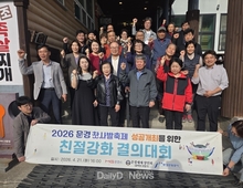 (데일리대구경북뉴스=황지현 기자)문경새재상인회(회장 김범주)가 4월 21일 문경새재에서 오는 5월 1일 개막하는 2026 문경찻사발축제를 앞두고 관광객들에게 최고의 서비스를 제공하기 위한 ‘친절 결의’행사를 개최했다. 이날 상인회원들은 ▲친절한 미소로 고객 응대하기 ▲청결하고 위생적인 외식 환경 조성 ▲적극적인 축제 안내 등을 담은 결의문을 낭독하며 실천 의지를 다졌다. 특히 이번 행사는 문경을 대표하는 축제인 찻사발축제 개막이 얼마 남지 않은 시점에 민간 영역에서도 품격 있는 접객 문화를 확립해야 한다는 상인들의 자발적인 의지로 마련되어 의미를 더했다. 김범주 문경새재상인회장은 “문경새재는 축제의 메인 무대이자 문경의 얼굴과도 같은 곳”이라며, “상인 한 분 한 분이 문경의 홍보대사라는 마음가짐으로 맛있는 음식과 따뜻한 친절을 제공해 축제의 성공을 뒷받침하겠다”고 밝혔다. 한편, 2026 문경찻사발축제는 오는 5월 1일부터 10일까지 열흘간 문경새재 야외공연장 및 오픈세트장 일원에서 다채로운 프로그램으로 손님들을 맞을 예정이다.