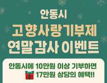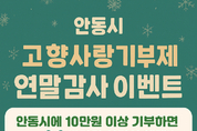 (데일리대구경북뉴스=황지현 기자)안동시는 연말정산 시즌을 맞아, 고향사랑기부제 참여자에게 감사의 뜻을 전하고 기부 문화를 확산하기 위해 12월 22일까지 ‘안동시 고향사랑기부제 연말 감사 이벤트’를 진행한다. 고향사랑기부제는 10만 원 기부 시 3만 원 상당의 답례품과 세액공제 혜택(10만 원까지 전액, 초과분 16.5%)을 받을 수 있는 제도다. 안동시는 여기에 더해, 연말 감사 이벤트 기간(12월 22일까지) 기부자 중 추첨을 통해 30명에게 안동 백진주 쌀 10kg을 추가로 증정할 예정이며, 당첨자는 12월 23일 문자로 개별 안내된다. 참여는 고향사랑e음 누리집 또는 농협은행 오프라인 창구를 통해 가능하다. 안동시는 이번 이벤트가 고향사랑기부제 참여 문화를 확산하고 지역경제 활성화와 기부자 만족도를 높이는 계기가 될 것으로 기대하고 있다. 특히 연말정산에 대한 관심이 높아지는 시기에 기부 혜택과 지역 특산품 선물을 동시에 받을 수 있어 참여가 한층 확대될 것으로 보인다. 안동시 관계자는 “올 한 해 안동을 응원해주신 모든 기부자께 깊이 감사드린다”며 “기부금은 시민의 삶의 질 향상과 지역발전을 위한 의미 있는 사업에 사용될 것”이라고 말했다. 이어 “