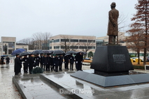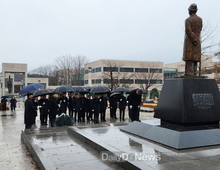 (데일리대구경북뉴스=양승미 기자)=포항시는 지난 12일 故 청암 박태준 포스코 명예회장 서거 14주기를 맞아 포스텍 노벨동산에 있는 청암 박태준 동상을 찾아 헌화하고 참배했다. 이날 헌화에는 장상길 포항시 부시장과 김일만 포항시의회 의장을 비롯한 의장단, 간부 공무원들이 함께해 청암 선생의 정신을 되새기며 묵념의 시간을 가졌다. 청암 박태준 명예회장은 강인한 의지와 리더십으로 영일만에 포항제철소를 세워 대한민국 산업 근대화를 이끈 개척자이자, 미래 인재 양성의 중요성을 강조하며 포항공과대학교(POSTECH)를 설립해 산업·과학기술·교육을 아우르는 포항의 미래 비전을 제시한 선구자다. 그의 숭고한 뜻은 오늘날에도 지역 발전의 중요한 가치로 이어지고 있다. 이강덕 포항시장은 “청암 박태준 선생은 ‘절대적 절망은 없다’는 불굴의 정신으로 포항을 세계 속의 철강 도시로 이끌었고, 미래를 위한 교육의 씨앗을 뿌린 분”이라며 “지금의 대외적 난관을 헤쳐나가기 위해서라도 청암 정신을 다시 가슴에 새겨 포항의 새로운 도약을 만들어 가겠다”고 전했다.