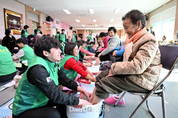 (데일리대구경북뉴스=황지현 기자)군위군새마을회(회장 박택관) 산하 직장공장새마을운동군위군협의회(회장 김천일)는 2월 9일 오후, 효령면행정복지센터에서 지역 어르신 60여 명을 모시고‘찾아가는 공경문화 족욕봉사’를 실시했다. 이번 행사는 직장공장새마을운동군위군협의회를 중심으로 효령면 새마을협의회 및 부녀회 회원들이 합심하여 마련됐으며, 지역 어르신들께 존경의 마음을 전하고 이웃 간의 따뜻한 공동체 의식을 다지기 위해 기획됐다. 봉사자들은 어르신들의 지친 피로를 풀어드리는 따뜻한 족욕 봉사를 시작으로, 흥겨운 노래교실과 정성껏 준비한 다과를 대접하며 효(孝) 실천에 앞장섰다. 특히 추운 날씨에 외부 활동이 적은 어르신들의 건강 상태를 살피고 따뜻한 말벗이 되어드리는 등 정서적 교감을 나누는 밀착형 봉사 활동을 펼쳐 큰 호응을 얻었다. 족욕 봉사를 받은 한 어르신은 “추위로 몸도 마음도 굳어 있었는데, 봉사자들이 손수 따뜻한 물로 발을 씻겨주니 몸의 피로는 물론 마음까지 훈훈해지는 기분”이라며 고마움을 전했다. 김천일 직장공장새마을운동군위군협의회장은“작은 정성이지만 환하게 웃으시는 어르신들을 뵈니 봉사의 참된 보람을 느낀다”며 “앞으로도 지역 곳곳에 온기를 전하고