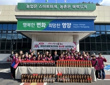 (데일리대구경북뉴스=양승미 기자)=영양군은 3월 4일(수) 농업기술센터 전정에서 한국생활개선영양군연합회 회원들과 함께 관내 취약계층을 위한 ‘사랑의 장 나눔 행사’를 진행했다. 이번 행사는 단순한 물품 전달을 넘어, 지역 농산물과 전통 식문화를 매개로 한 ‘생활 속 돌봄 실천’이라는 점에서 의미를 더했다. 생활개선회원들은 영양산 콩으로 만든 메주를 활용해 직접 장을 담그고, 정성껏 숙성시킨 된장과 간장을 이웃들에게 전달하며 마음까지 함께 나눴다. 특히 올해 행사는 고령화로 인해 전통 장 담그기가 점점 어려워지는 현실 속에서, 어르신들의 식생활을 세심하게 살피고 지역 공동체의 정을 잇는 활동으로 주목받고 있다. 회원들은 단순 배부가 아닌 직접 방문 전달을 통해 안부를 살피며 정서적 교류도 함께 이어갔다. 한국생활개선영양군연합회는 2007년부터 ‘사랑의 장 나눔’을 지속해 오며, 해마다 수백 가구의 이웃에게 건강한 먹거리와 따뜻한 관심을 전해오고 있다. 이는 전통 식문화 계승은 물론, 여성 농업인의 사회적 역할을 지역 돌봄으로 확장해 온 대표적인 실천 사례로 평가받고 있다. 김정자 한국생활개선영양군연합회장은 “장이 익어가는 시간만큼 마음도 함께 담아왔다”라며 “