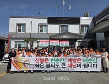 (데일리대구경북뉴스=황지현 기자)청도군 화양읍(읍장 이화일)은 4월 20일 전 직원이 함께 ‘우리마을 탄소줍깅 캠페인’을 실시하며 탄소중립 실천에 앞장섰다. 이번 캠페인은 걷기와 환경정화 활동을 결합한 ‘플로깅(Plogging)’ 개념에 탄소중립 실천 의미를 더한 ‘탄소줍깅(Carbon Plogging)’ 활동으로, 마을 곳곳을 걸으며 쓰레기를 수거하고 친환경 생활실천 분위기를 확산하기 위해 마련됐다. 이날 행사는 화양읍사무소 청사 앞에서 출발해 읍내 주요 도로변과 마을 안길, 공터 등을 중심으로 진행됐다. 직원들은 구간별로 흩어져 버려진 생활쓰레기와 재활용 가능 자원을 수거했으며, 수거 과정에서 분리배출도 함께 실천해 환경보호의 의미를 더했다. 이화일 화양읍장은 “직원 모두가 한마음으로 참여해 우리 마을을 더욱 깨끗하게 가꾸는 뜻깊은 시간이 됐다”며 “앞으로도 일상 속 작은 실천을 바탕으로 탄소중립과 쾌적한 마을환경 조성을 위한 활동을 지속적으로 이어가겠다”고 말했다.