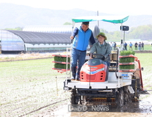 (데일리대구경북뉴스=황지현 기자)청도군(군수 권한대행 김동기)은 4월 21일 이서면 금촌리 일원에서 (사)한국쌀전업농청도군연합회 주관으로 2026년 첫 모내기 행사를 개최하고 본격적인 영농철의 시작을 알렸다. 이번 행사는 김동기 청도군수 권한대행과 전종율 청도군의회 의장 및 군의원, 쌀전업농 회원 등 120여 명이 참석한 가운데 진행됐으며, 소식재배 모내기 시연을 통해 한 해 농사의 성공을 기원했다. 이날 이앙한 벼 품종은 조생종인‘해담쌀’로, 우수한 밥맛과 안정적인 수량성을 갖춘 것이 특징이다. 도열병과 잎집무늬마름병에 대한 저항성이 높아 병해충 피해를 줄일 수 있고, 기후변화에 따른 재해 위험에도 비교적 강한 품종으로 평가받고 있다. 또한 8월 중순경 수확이 가능해 조기출하를 통한 농가소득 증대에도 기여할 것으로 기대된다. 아울러 이날 행사에서는 최근 농업 현장에서 주목받고 있는 무인 AI 트랙터 시연회도 함께 열려 농가들의 큰 관심을 모았다. 시연에서는 자율주행 기반의 무인 트랙터가 논을 정밀하게 주행하며 작업을 수행하는 모습이 공개됐으며, 작업 경로 설정부터 자동 운행, 작업 완료까지 전 과정이 자동화된 첨단 기술이 적용돼 눈길을 끌었다. 김동기 청도