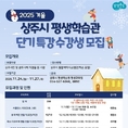 (데일리대구경북뉴스=황지현 기자)상주시 평생학습원은 오는 12월 1일부터 12월 19일까지 겨울 인문학·단기특강을 운영한다. 이번 특강은 정기과정 외에도 다양한 원데이형 단기강좌와 인문학 프로그램을 마련해 시민의 학습 수요를 충족시키기 위해 추진 된다. 강좌는 타로카드, 셔플댄스 기초, 슬기로운 금융 재테크, 나를 이해하는 이미지 커뮤니케이션, 좋아요 많이 받는 글쓰기 등 총 11과목 20개반으로 구성되며 총 309명의 수강생을 모집한다. 수강생 모집기간은 단기특강은 11월 24일부터 11월 27일까지 접수, 인문학 특강은 12월 8일부터 12월 12일까지 상주시 통합예약시스템을 통해 접수할 수 있다. 상주시에 주소 또는 직장을 둔 성인은 모두 신청할 수 있다. 수강료는 무료이며 일부 강좌의 경우 재료비는 수강생이 별도 부담한다. 자세한 사항은 평생학습원 홈페이지 공지사항 또는 전화(평생교육팀)로 문의하면 안내받을 수 있다. 권양희 평생학습원장은 “이번 겨울 특강은 짧지만 알찬 배움의 기회를 제공하기 위해 기획했다”며 “시민 여러분의 많은 관심과 참여를 바란다”고 말했다.