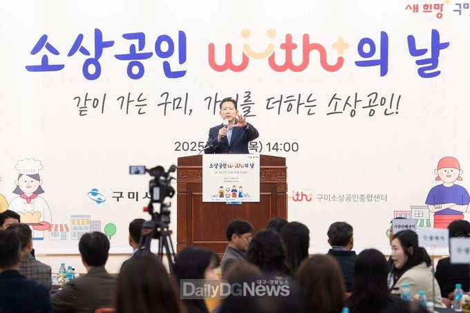 (데일리대구경북뉴스=황지현 기자)구미시는 11월 13일 구미상공회의소 2층에서 ‘제2회 소상공인 With⁺의 날’ 행사를 열었다. 이날 행사는 구미소상공인종합센터 주관으로 관내 소상공인과 유관기관 관계자 등 200여 명이 참석했다. 이 센터는 지난해 6월 도내 최초로 문을 연 소상공인 전담 지원기관으로, 지역 경제의 든든한 동반자 역할을 해왔다.
