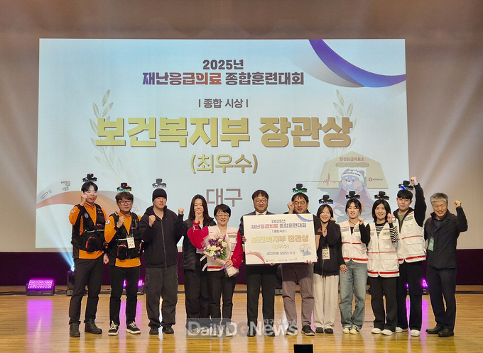 (데일리대구경북뉴스=이준호 기자) 대구시는 11월 11일부터 12일까지 충남 천안 JEI재능교육연수원에서 열린 ‘2025년 재난응급의료 종합훈련대회’에서 최우수상(보건복지부장관상)을 수상하며, 전국 1위를 차지했다고 밝혔다.