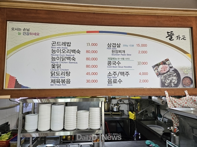 석포면 소재 식당 뜰가든(석포면 청옥로 1885)은 4년째 운영 중인 지역 대표 맛집이다. 주메뉴인 곤드레밥은 곤드레나물을 듬뿍 넣어 구수한 맛이 일품이다. 된장찌개와 각종 나물 반찬이 푸짐하게 나와 건강한 한 끼 식사를 원하는 방문객들에게 인기가 높다. 또 다른 시그니처 메뉴인 닭백숙은 국내산 영계와 한약재를 사용해 보양식으로 손색이 없다. 지역 주민들은 물론 석포면을 찾는 관광객들 사이에서 입소문을 타며 점심시간엔 자리가 없을 정도다. 식당 관계자는“신선한 지역 식재료로 정성껏 만든 음식을 선보이고 있다”며 "석포 여행 중 든든한 한 끼를 원한다면 들러달라”고 말했다.